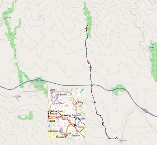 Casi batimos record de velocidad pues la ruta se realizó en 5 horas -22 km ida y vuelta con un desnivel próximo a 800 m.- más una hora para disfrutar el paisaje. ¡Vamos una borriquería!. El trazado y perfil fue el siguiente: